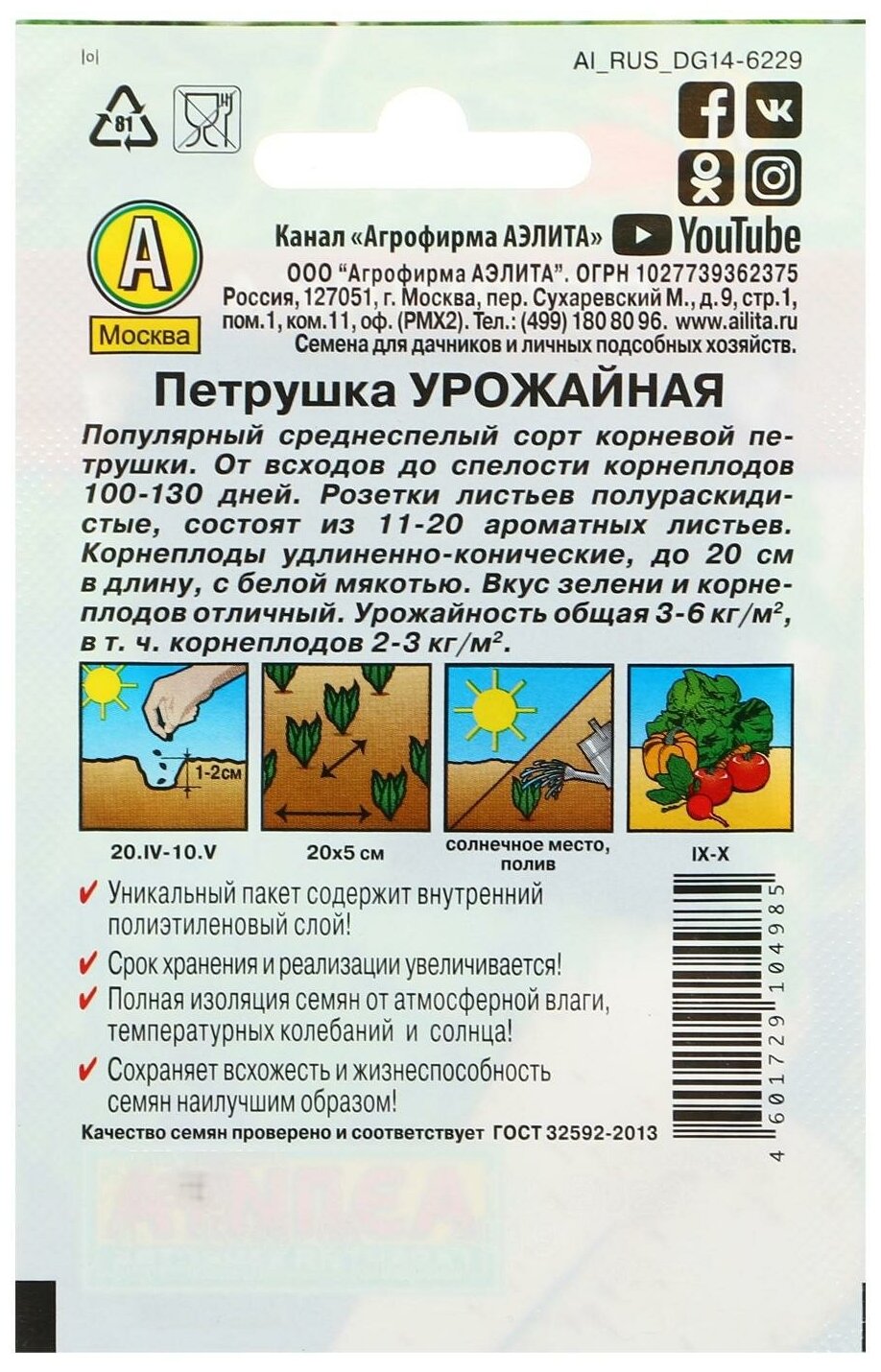 Сканы сертификатов доступны по запросу на почту quality@aelita.ru. Лабораторные тесты семян публикуются ежеквартально на сайте.