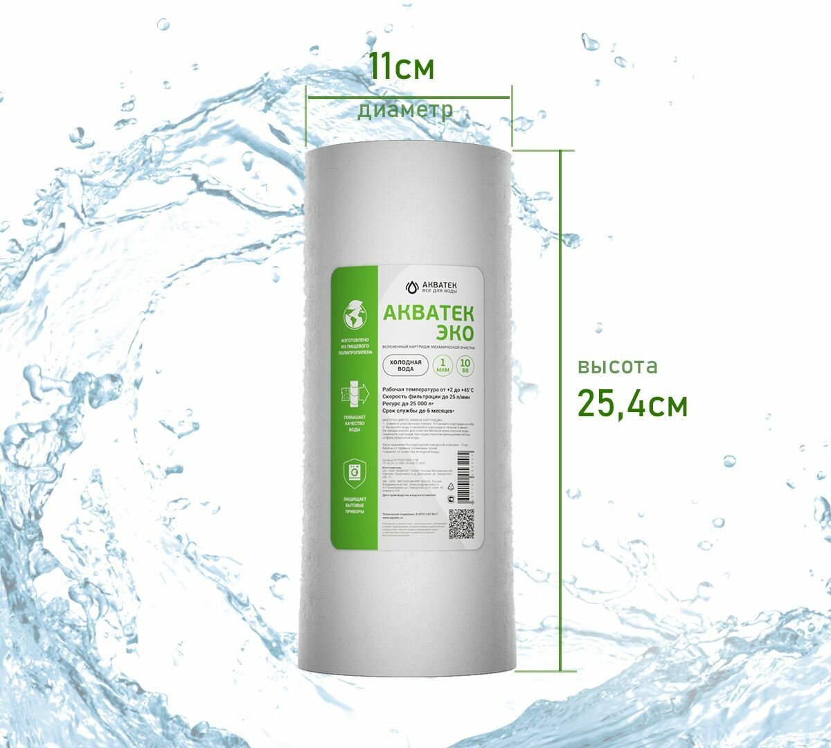 Ключевой параметр выбора — тонкость фильтрации. Модели на 1-5 мкм (Акватек 10" SL) защищают мембраны обратного осмоса, версии 20-50 мкм (ЭКО 20" BB) предназначены для предварительной очистки в загородных домах.
