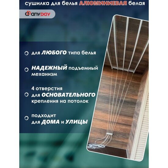 В каталоге товаров бренда Anyday до конца ноября 2025 действует скидка на следующие товары: Сушилка потолочная Anyday для белья алюминиевая 1 4м черная 005361 Сушилка потолочная Anyday для белья алюм 7 пр 1 4м белая 005385 Сушилка потолочная Anyday TELESCOP BLACK для белья 7 пр 1 4 2 5м черный 005554 Сушилка потолочная Anyday TELESCOP BLACK для белья 1 0 1 8м черный 005532 Сушилка для белья Anyday 005455 передвижные веревки рабочая длина 0 8м белая Чайный напиток TeaVitall Anyday Himalayan в пакетиках 38 шт Чайный напиток TeaVitall Anyday Tibetan в пакетиках 38 шт