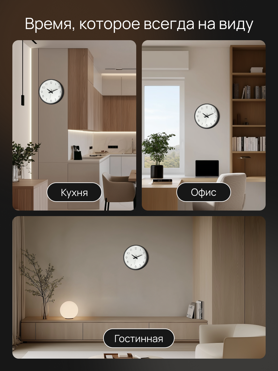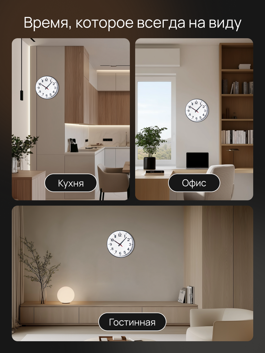 Особенности часов: Настенные модели ML200916 (33 см), PL1712 502 (30 см), PL2207-700-1 с арабскими цифрами.