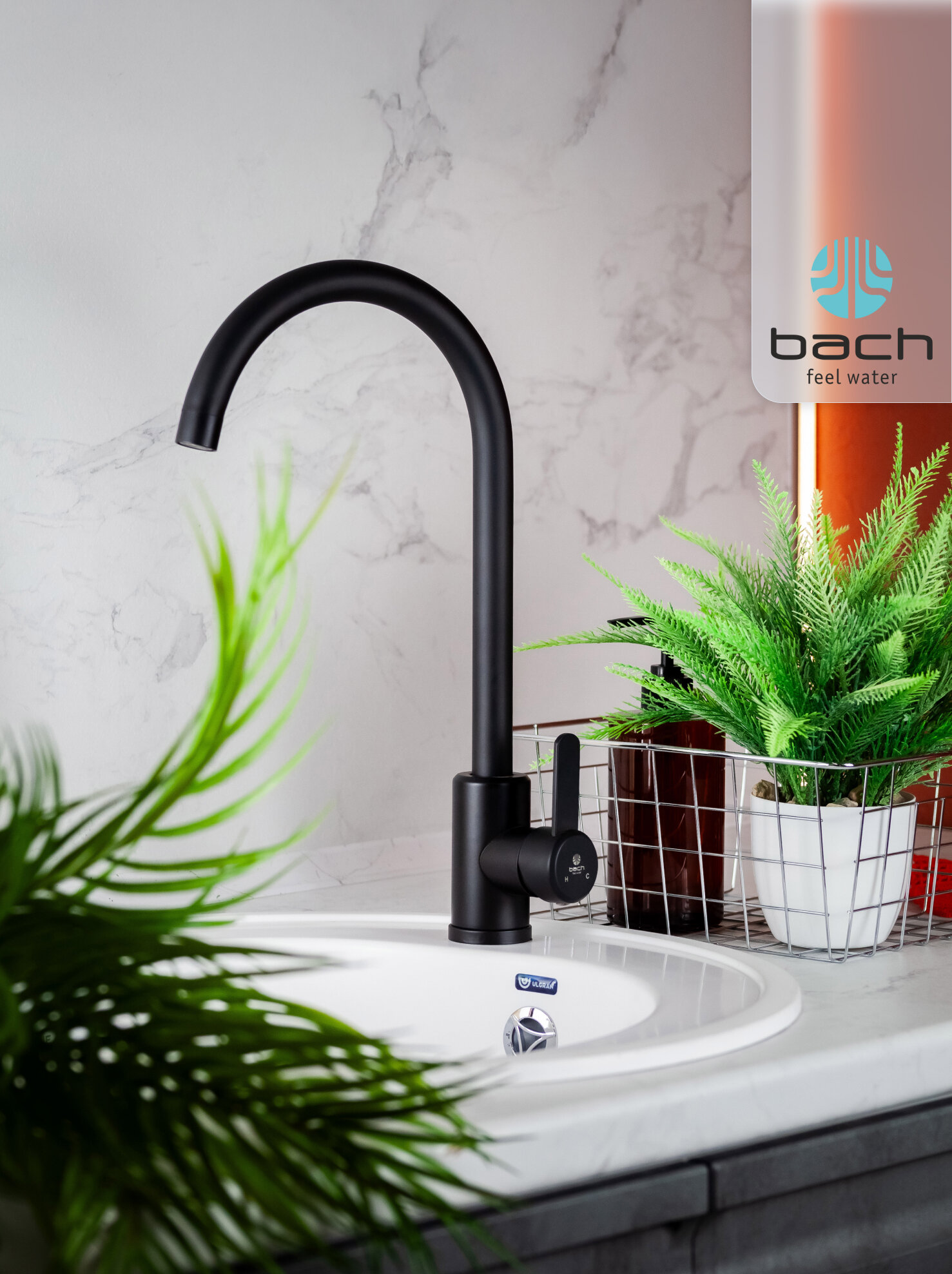 Конструкции из нержавеющей стали марки 304 гарантируют защиту от коррозии. Модель Bach 15850 с гибким изливом оснащена системой EcoFlow для экономии воды до 40%.