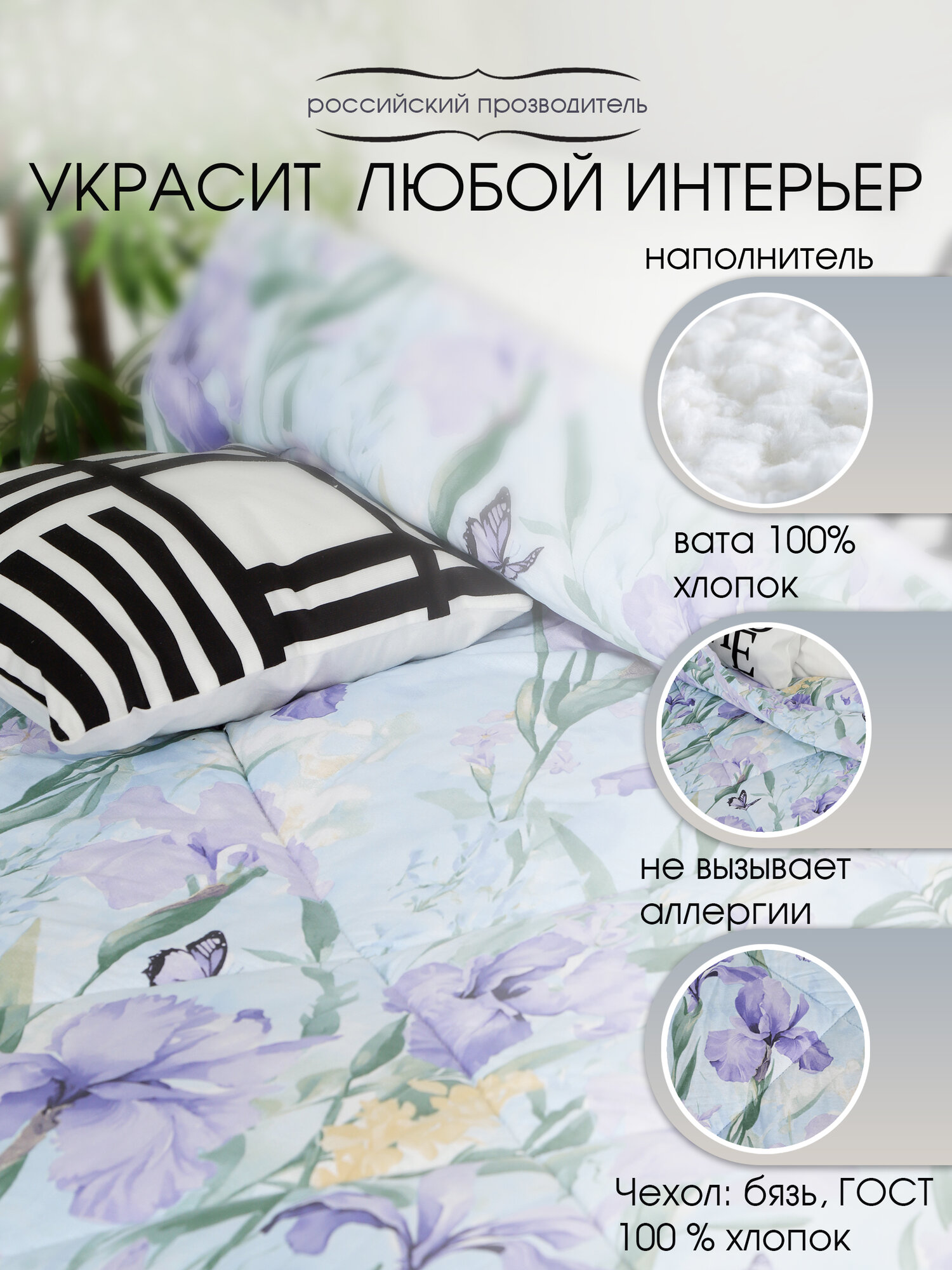 | Одеяло зимнее | 172x205 см | 100% хлопок | Антистатическая обработка |