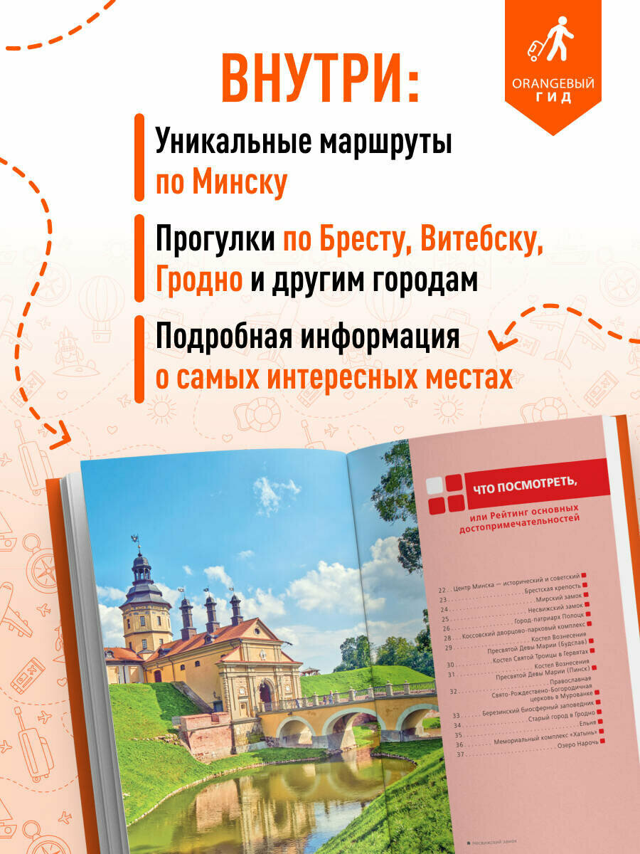 Бренд "Беларусь" предлагает серию профессиональных путеводителей по регионам, включающих детальные описания Минска, Бреста, Витебска и других городов. Особого внимания заслуживает обновленное издание "Беларусь: Минск Брест Витебск..." с дополненными маршрутами по Беловежской пуще и замковым комплексам. Для любителей интерактива представлена скретч-карта "Путешествуй и стирай" в тубусе – уникальный формат для отметки посещенных мест.