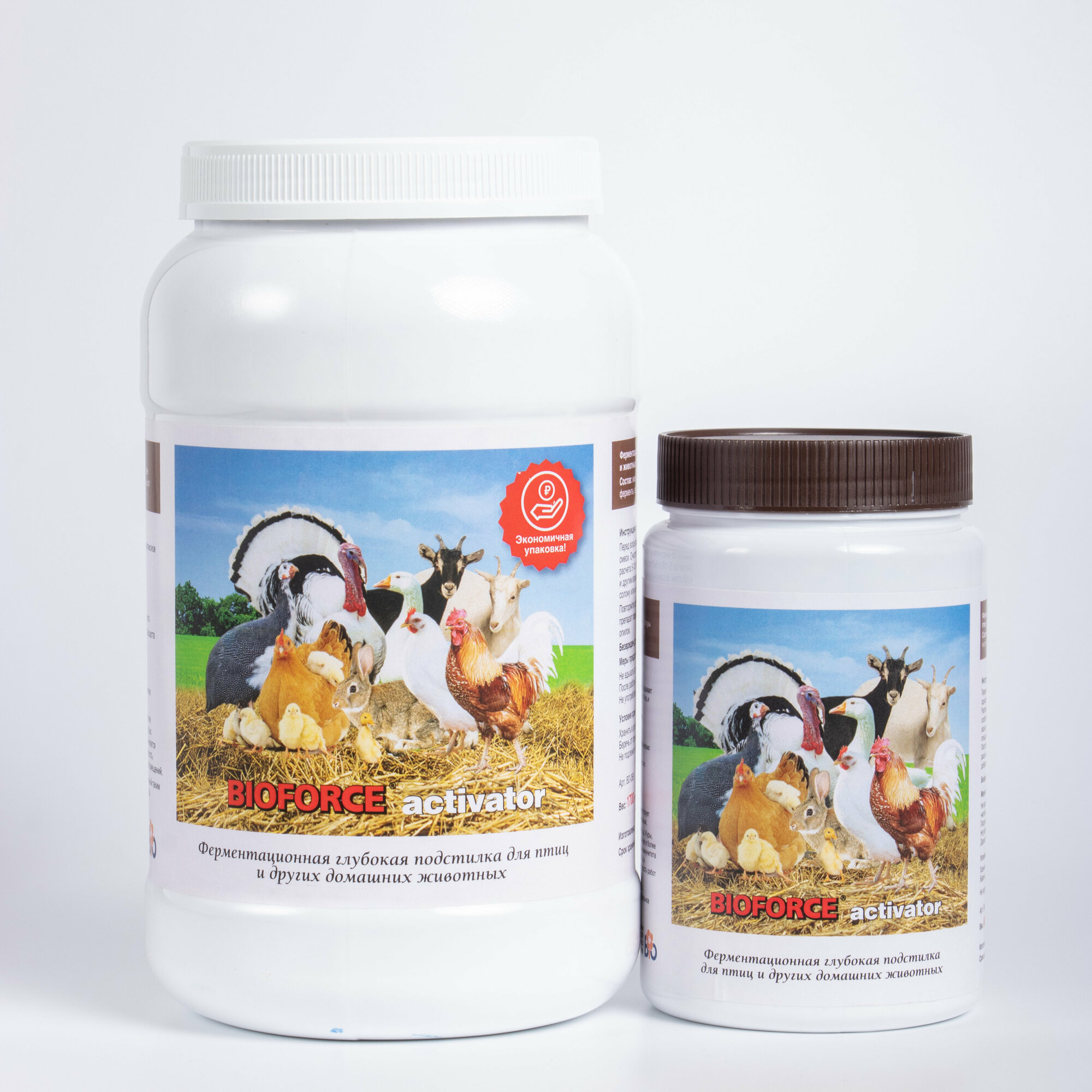 Препараты Activator 500 г и 17 кг подходят для всех типов животных: от птиц до КРС. Тесты показывают повышение температуры подстилки на 5-7°С, что критично для зимнего содержания.
