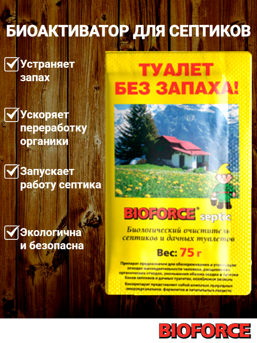 В каталоге товаров бренда Bioforce до конца декабря 2025 действует скидка на следующие товары: Бактерии для септика Bioforce Septic 500г средство для выгребных ям и дачных туалетов биоактиватор для септика биопрепарат для туалета Жидкость BIOFORCE для нижнего бачка биотуалета 1000мл розовая Средство для выгребных ям 75г Бактерии для подстилки в курятник 3х75г Комплект жидкостей для биотуалета BIOFORCE для верхнего и нижнего бачков 1000 и 1000 мл 2шт Живые бактерии Bioforce Septic Shock жидкость для септиков 1л Жидкость для биотуалета Bioforce формула Bioforce для верхнего бачка 1л