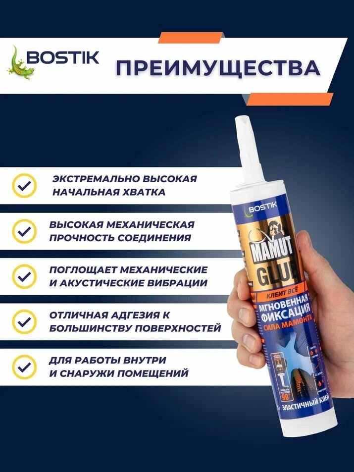В каталоге товаров бренда Bostik до конца ноября 2025 действует скидка на следующие товары: Bostik Blu Tack клейкая масса с бесконечным повторным использованием 0 045 кг Супер мощный гибридный монтажный клей Bostik Mamut Glue 290 мл артикул 638300 Высококачественный акриловый герметик Bostik Perfect Seal декор акрил универсальный 280 мл белый Ультралегкий акриловый шпаклевочный герметик Bostik Perfect Seal акрил шпаклевочный быстрый 280мл белый BOSTIK Standard 65 монтажная пена пистолетная полиуретановая однокомпонентная универсальная 800 мл артикул 20020009 Bostik Perfect Seal Идеальный герметик Спрей Гладкий шов 200 мл Моментально окрашиваемый акриловый герметик Bostik Perfect Seal акрил мокрым ПО мокрому 300 мл белый