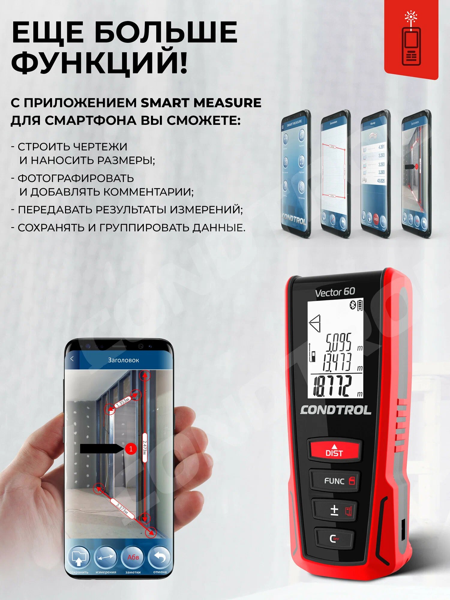 В каталоге товаров бренда Condtrol до конца декабря 2025 действует скидка на следующие товары: Лазерный дальномер CONDTROL Smart 60 1 4 098 Измеритель влажности Condtrol Hydro Test Очки Condtrol 1 7 035 для лазерных приборов красные Лазерный нивелир Condtrol Smart 3D Plus Лазерный дальномер CONDTROL Smart 60 Измеритель влажности Condtrol Hydro Tec Уровень лазерный Condtrol EasyFix