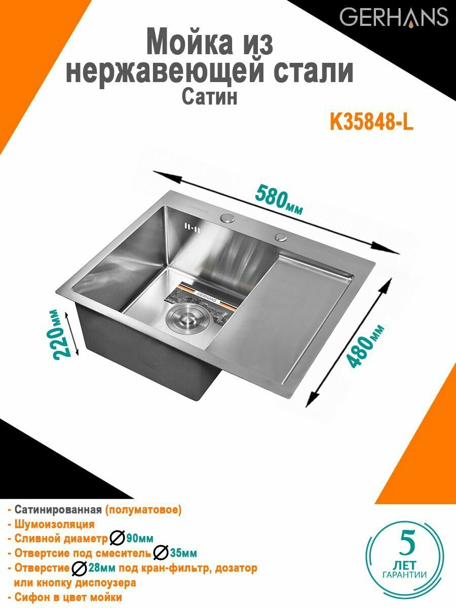 Gerhans — специализированный бренд, предлагающий профессиональные решения для кухни. Позиционируется как производитель, сочетающий инженерную точность с эстетикой дизайна. Основной фокус — мойки, сантехническая арматура и аксессуары из нержавеющей стали с улучшенными характеристиками.