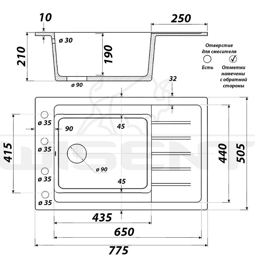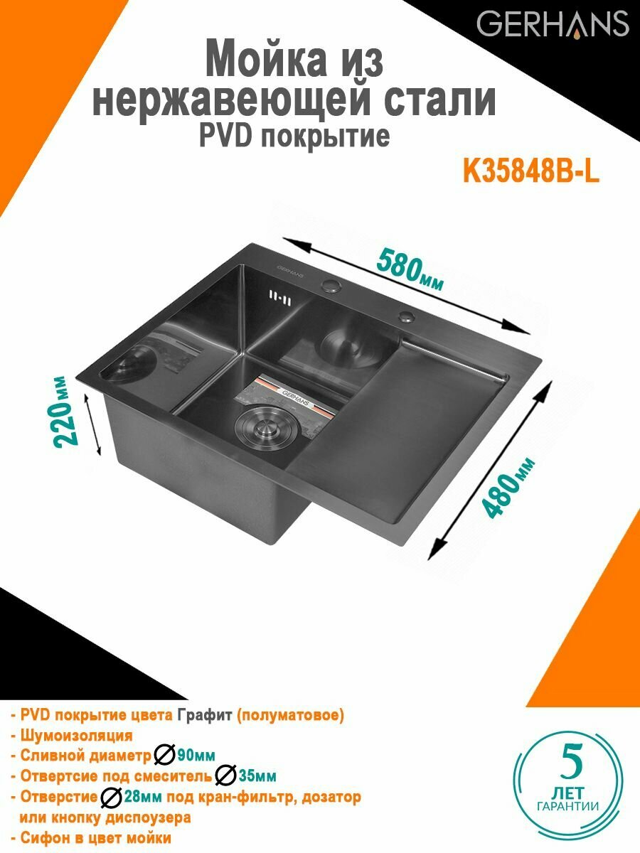 | GERHANS K36050В | 600×500 | Увеличенная чаша | PVD (графит) |