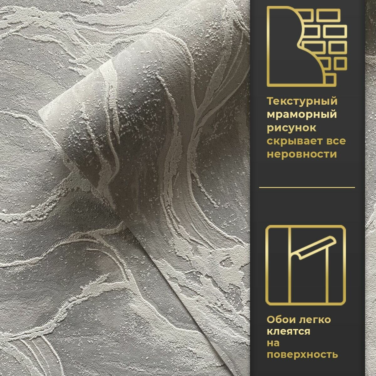 Серия Оникс-12 под мрамор (106 см ширина, флизелиновая основа) демонстрирует преимущества верхнего винилового слоя: