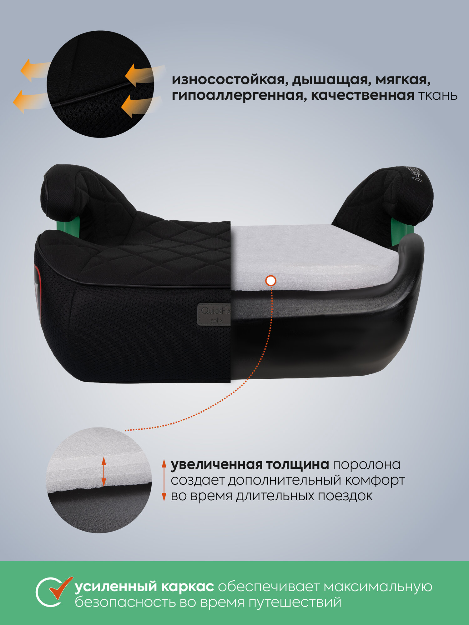 Продукция сертифицирована по стандартам ECE R44/04, боковая защита снижает риск травм на 25%.