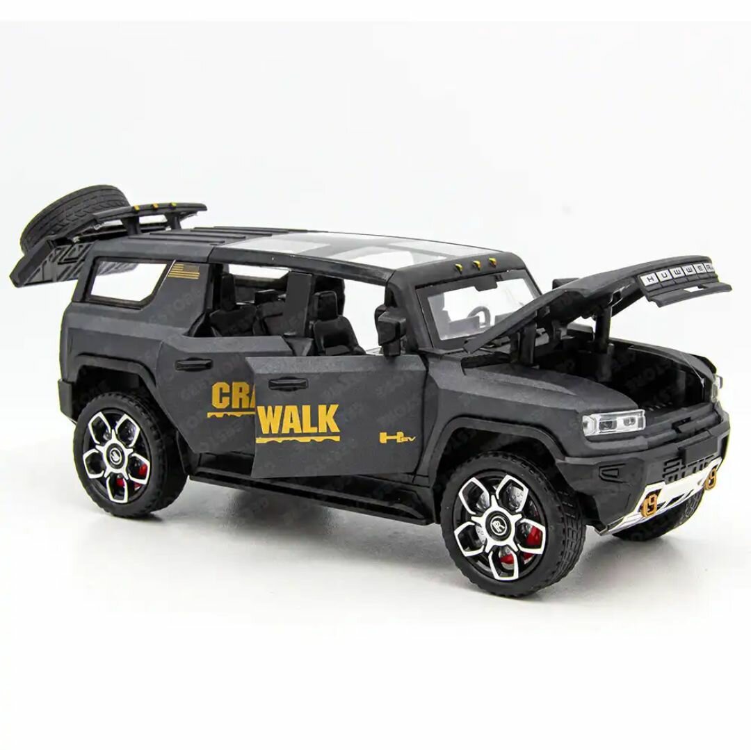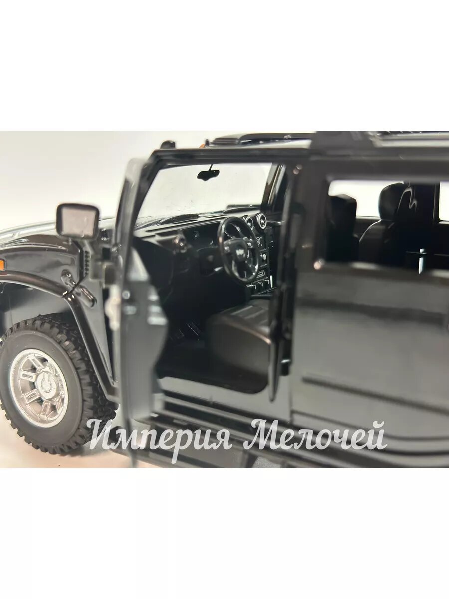 Масштабные машинки Welly 1:24 точно воспроизводят экстерьер Hummer H2 с открывающимися дверями и инерционным механизмом. Толщина металла кузова в 0.8 мм предотвращает деформацию при падениях - главную проблему конкурентов в ценовом сегменте до 2000 руб.