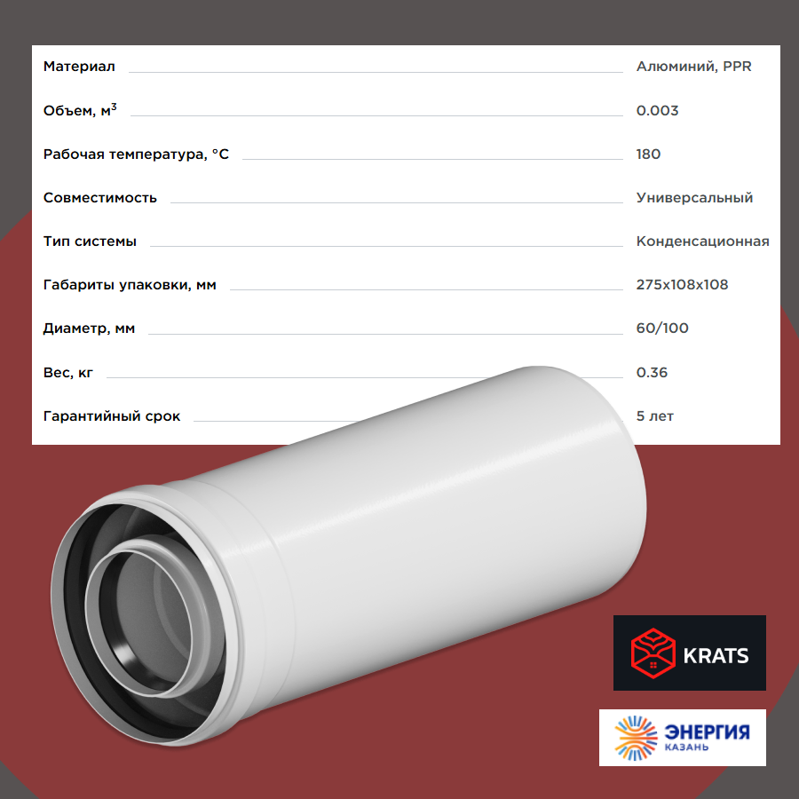 Krats — российский бренд, специализирующийся на производстве комплектующих для систем дымоудаления и отопительного оборудования. Компания предлагает инженерные решения для коаксиальных и раздельных дымоходов, уделяя особое внимание безопасности, долговечности и универсальности продукции. В каталоге представлены все необходимые компоненты: от базовых удлинителей до специализированных антиобледенительных систем.