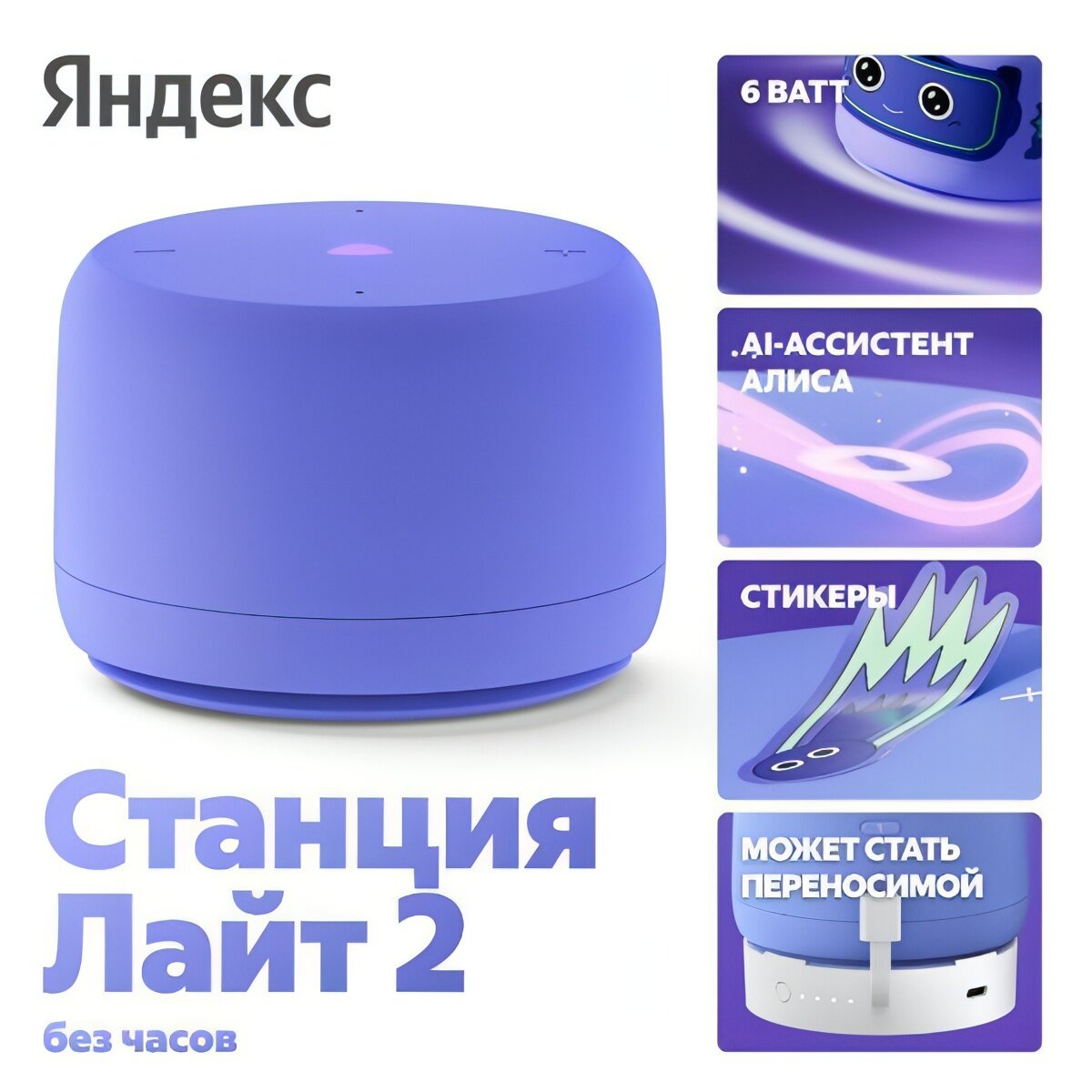 Линейка Яндекс Станция Лайт представлена 6-Вт моделями второго поколения с расширенным функционалом. Ключевые особенности: