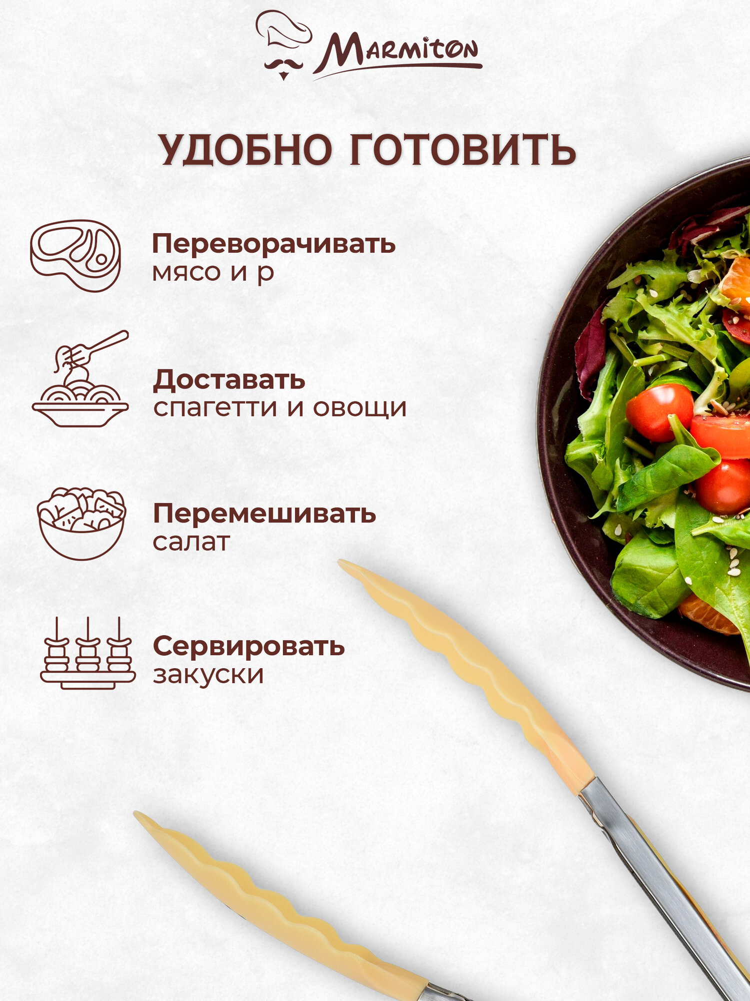В каталоге товаров бренда Marmiton до конца декабря 2025 действует скидка на следующие товары: Кисть кулинарная BASIC Marmiton силиконовая серая 16 5 см x 3 см Щипцы кухонные нейлон силикон сталь молочный цвет Marmiton Термопленка для яиц Пасхальная 2 шт по 7 наклеек MARMITON Таймер для варки яиц красный 3 шкалы варки органическое стекло Marmiton Подставка под горячее термостойкая под кружку под чайник силиконовая складная цвет в ассортименте MARMITON Набор досок разделочных пластиковых гибких 2 шт 35х25х0 1 см 30х20х0 1 см Marmiton 17637 Сепаратор для яиц пластиковый Marmiton BASIC размер 12 5х6 см белый