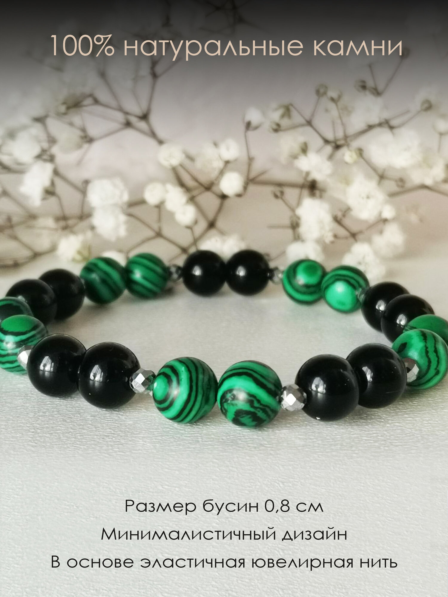 | Гематитовые браслеты | Гематит | 15-20 см | Чёрный, зелёный, белый |