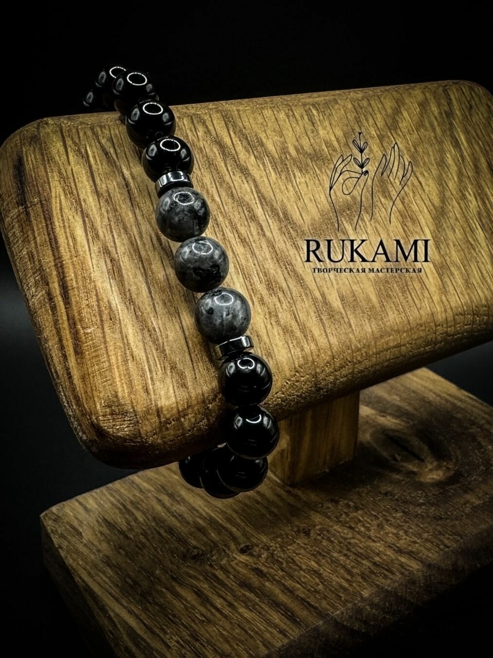Браслеты из гематита (кровавика) составляют основу каталога бренда. Минерал с характерным металлическим блеском представлен в трёх цветовых вариантах: классический чёрный (диаметр 15-20 см), редкий белый с графитовыми прожилками и зелёный с эффектом иризации. Каждый экземпляр производится по технологии hand-made с регулируемой эластичной посадкой.