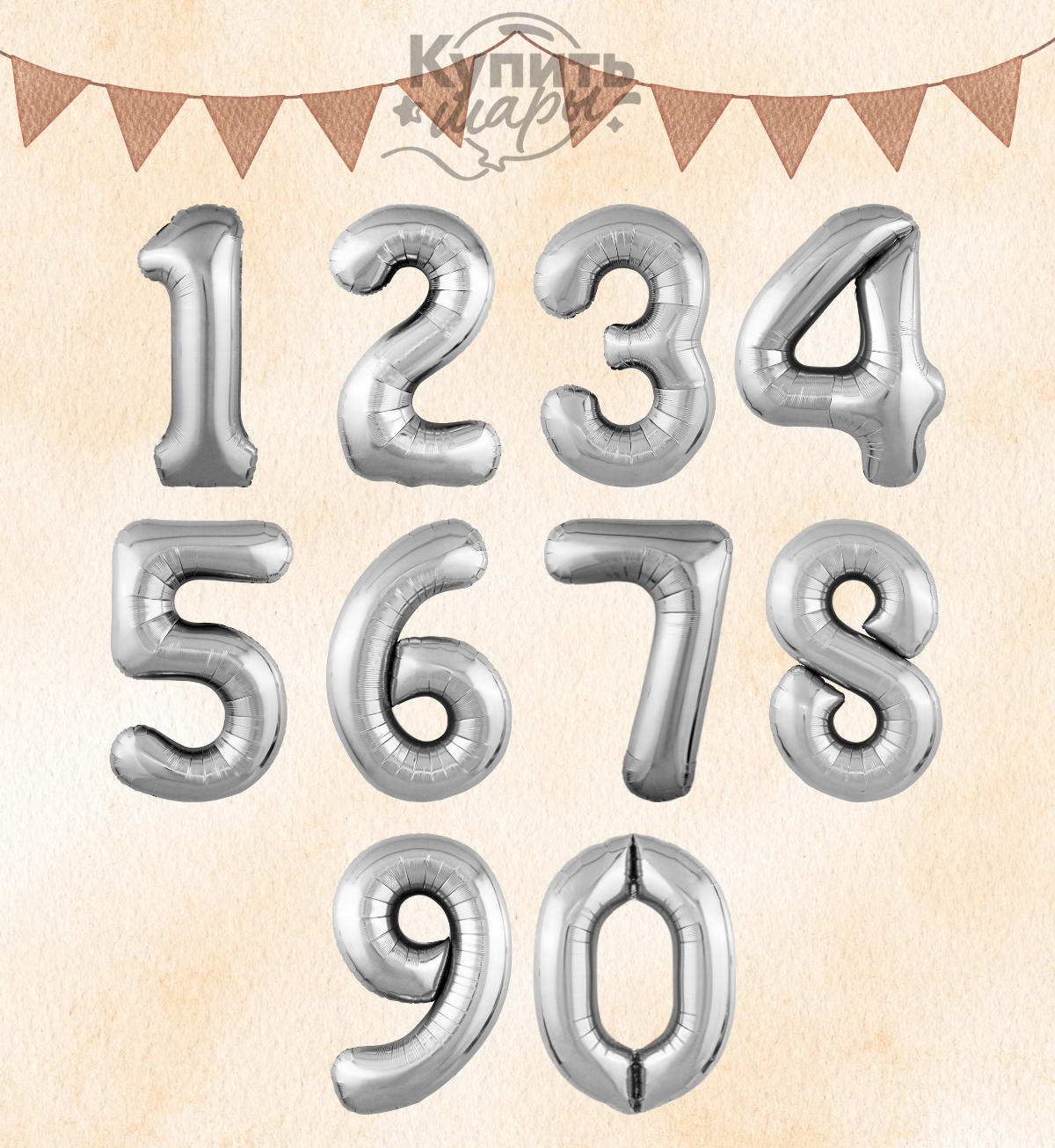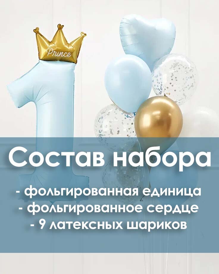 | Фольгированная цифра "1" | 102 см (золото/серебро) | Двусторонняя печать, встроенный клапан | 10-14 дней |