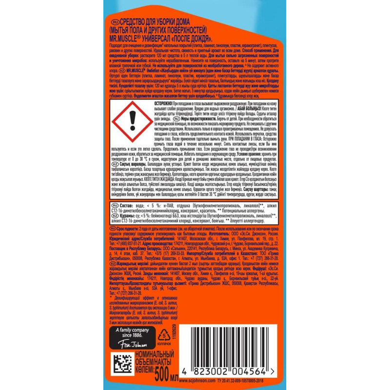 В каталоге товаров бренда Mr.Muscle до конца декабря 2025 действует скидка на следующие товары: Средство для окон и зеркал После дождя сменный блок Mr Muscle 530 мл SC J мистер мускул Гранулы д прочистки труб 70г Чистящий спрей Мистер Мускул для кухни Свежесть Лимона 500 мл Чистящий спрей Мистер Мускул лаванда для стекол и поверхностей 530 мл Чистящий спрей Мистер Мускул После дождя для стекол и зеркал 530 мл Гранулы Мистер Мускул для прочистки всех видов сливных труб 4 70 г Моющее средство Мистер Мускул Цитрусовый коктейль для пола и поверхностей 500 мл
