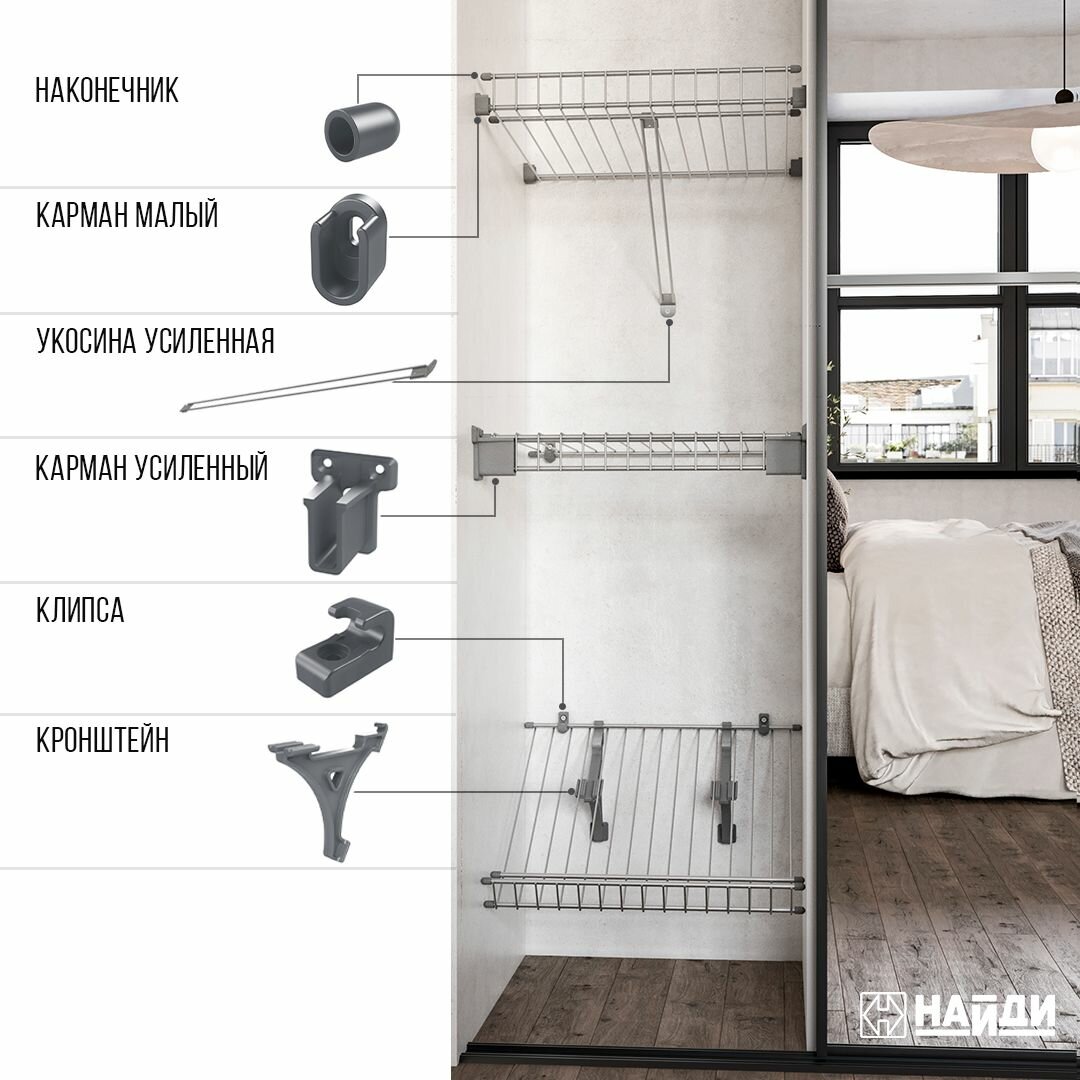| Системы хранения и фурнитура | Коннекторы, полки, клипсы, профили | Организация пространства, модульные решения |