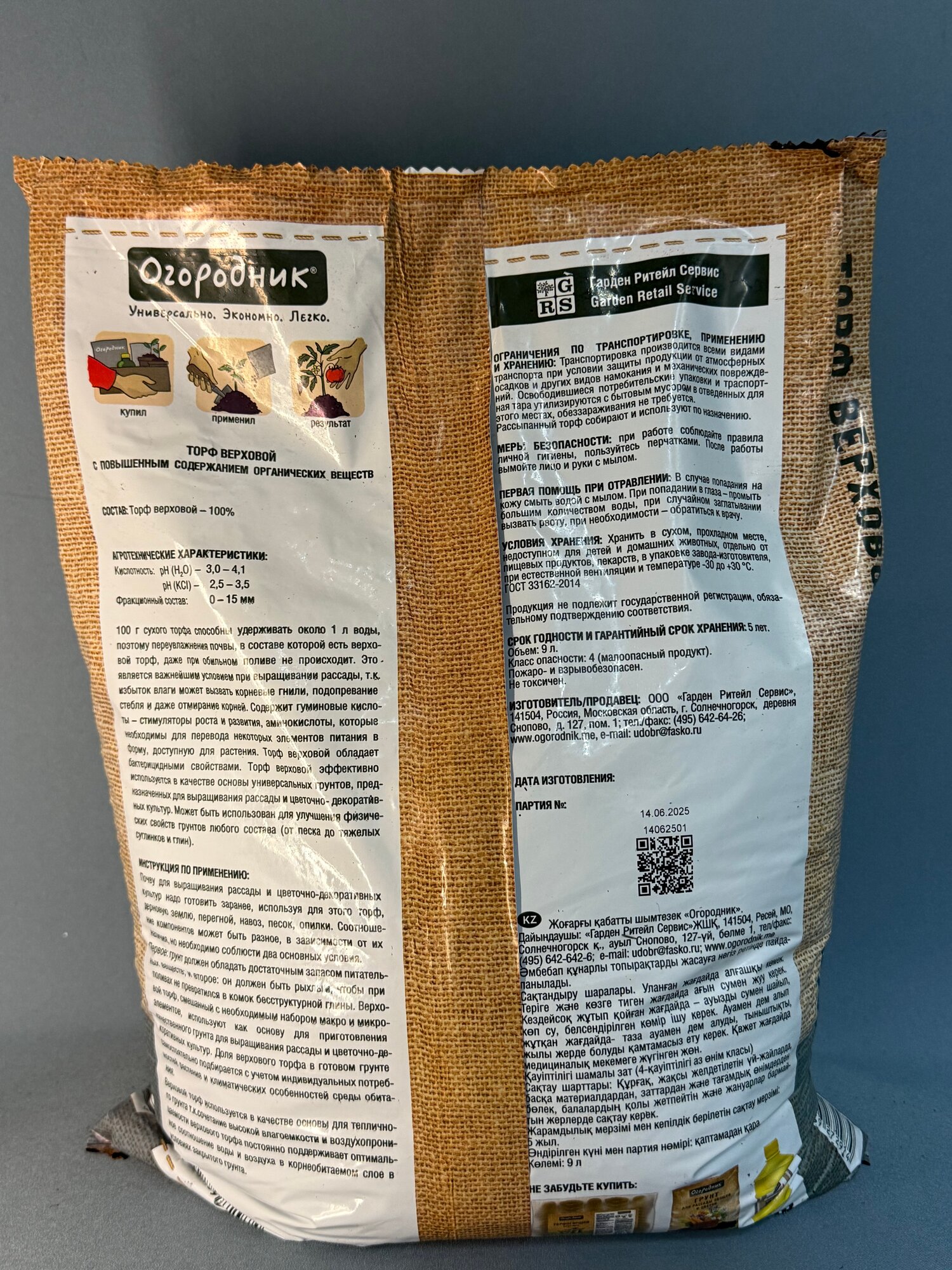 | Торф низинный | 9 л | Нейтральный pH для рассады и мульчирования |