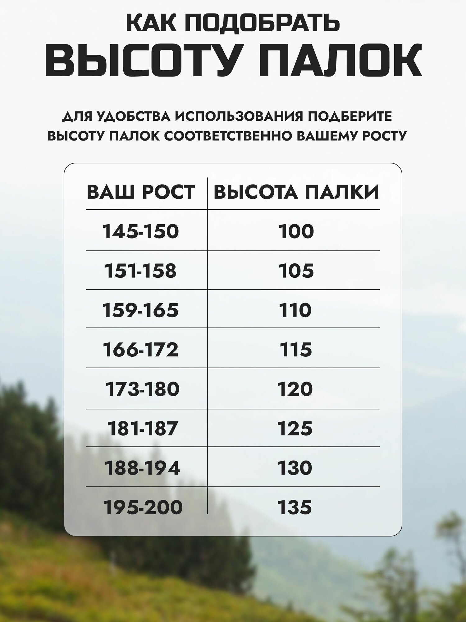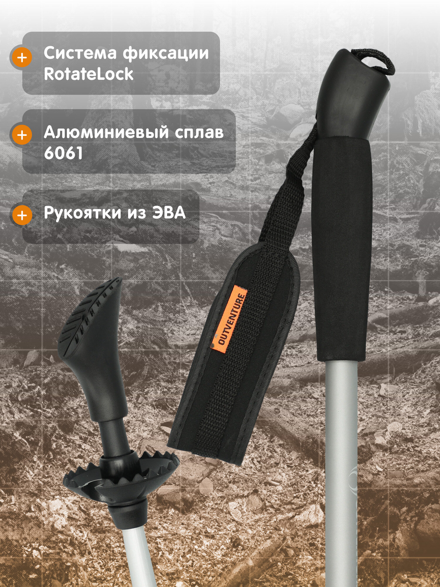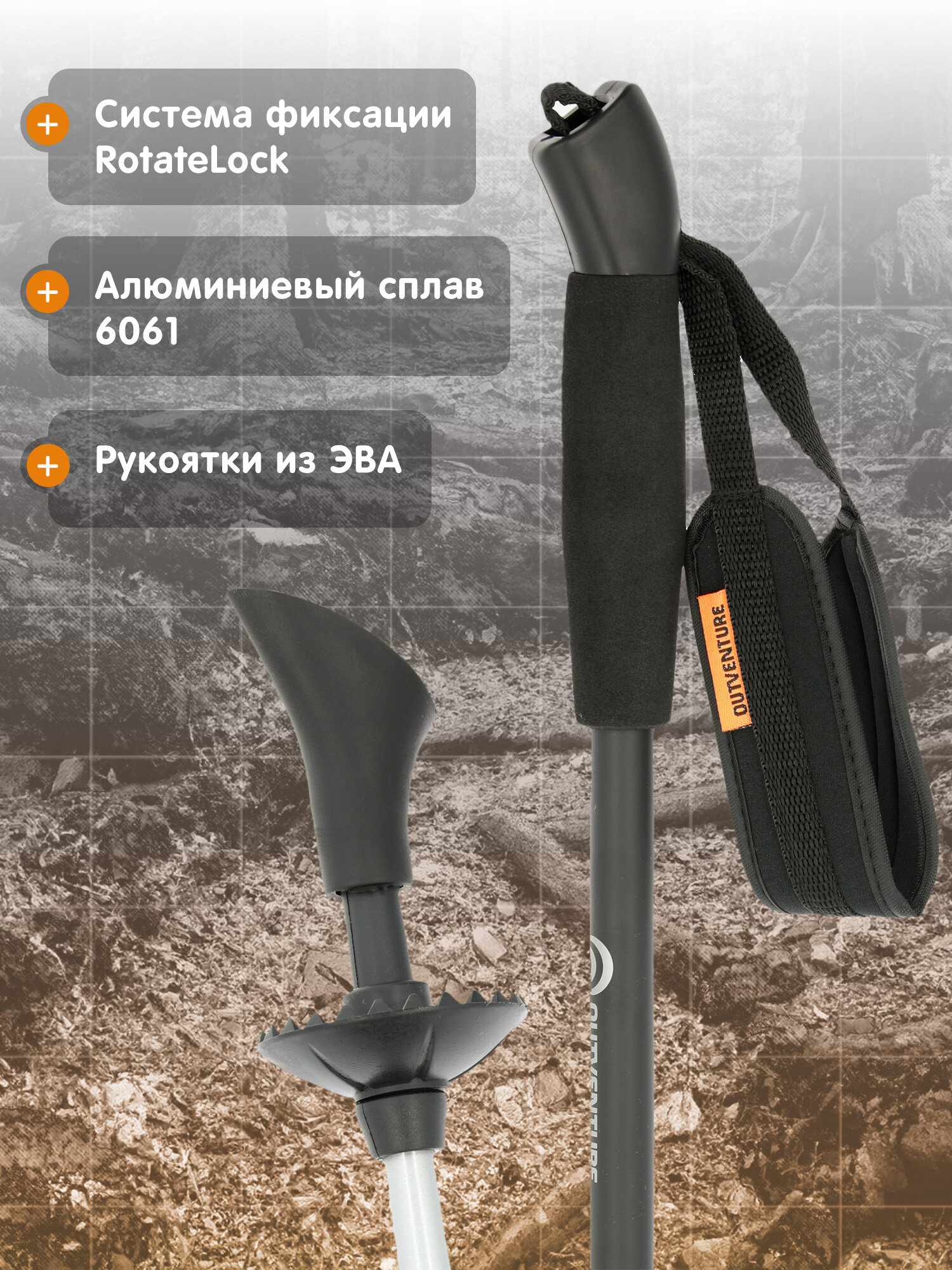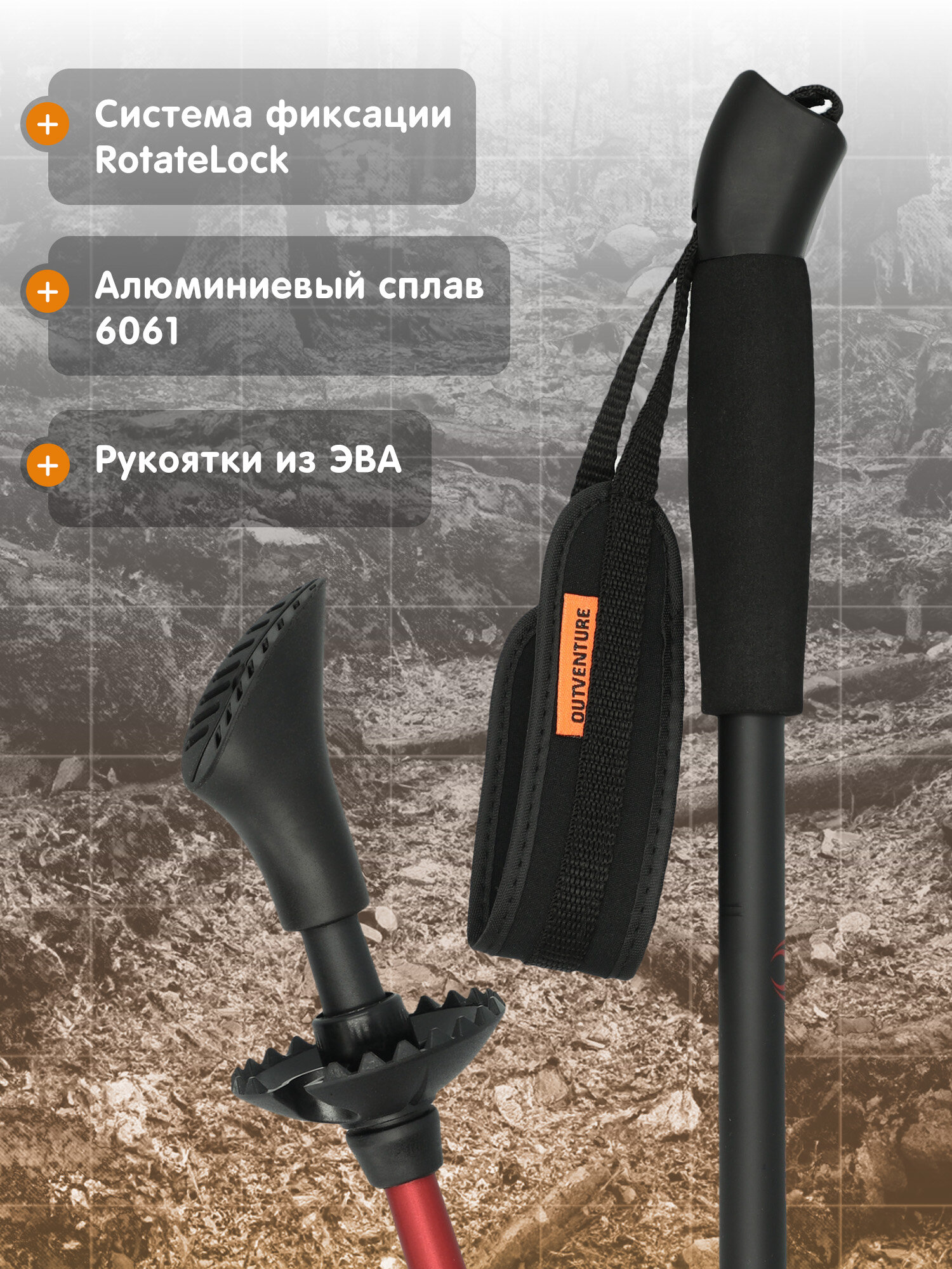 Все модели имеют полиамидные рукояти с пористой структурой, предотвращающей скольжение. Для горных походов выбирайте палки с титановыми наконечниками, для лесных маршрутов — съёмные резиновые башмачки диаметром 45 мм.