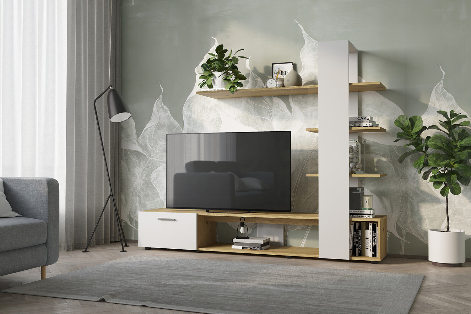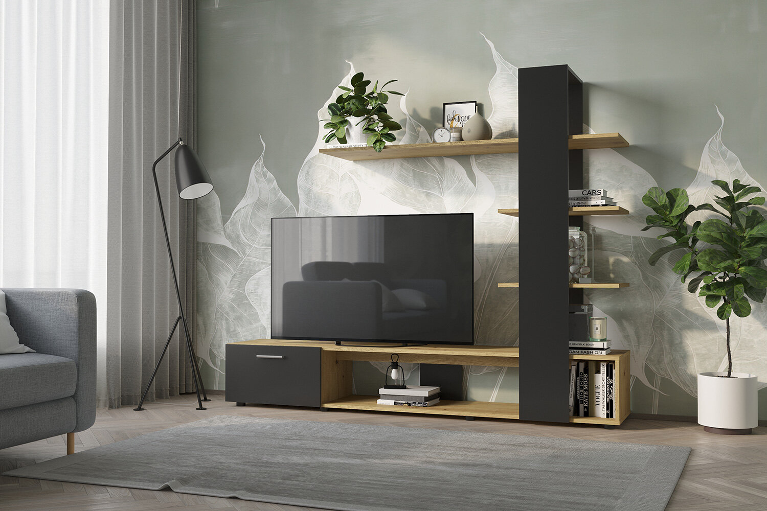 Серия мебели Qwerty основана на принципе пространственного минимализма. Тумбы ARTVISAN с фасадами из эмитирующего дуб ЛДСП имеют регулируемые ножки для установки на неровные поверхности. Особенность конструкции — полки разной глубины (37-42 см), позволяющие хранить мультимедийное оборудование различных габаритов.