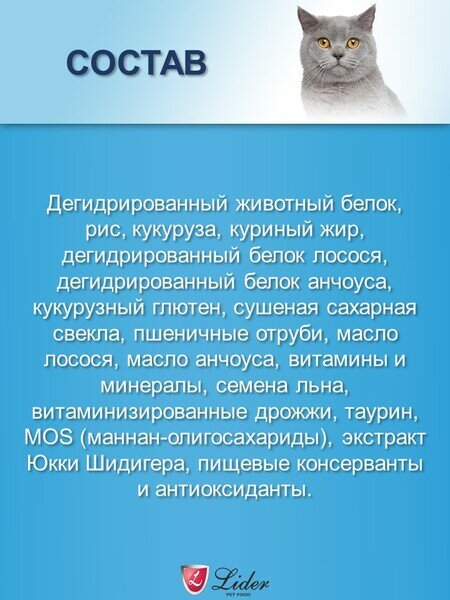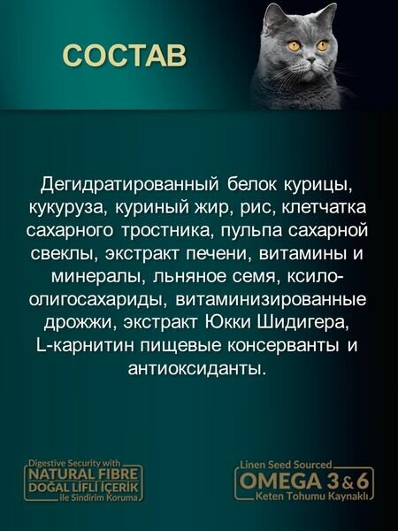 Составы разработаны с участием ветеринарных диетологов — содержат пребиотики, таурин и L-карнитин. Гранулы корма производятся методом низкотемпературной экструзии, что сохраняет природные витамины сырья. Упаковки фасуются в объемные мешки по 15 кг для экономии при содержании нескольких животных.