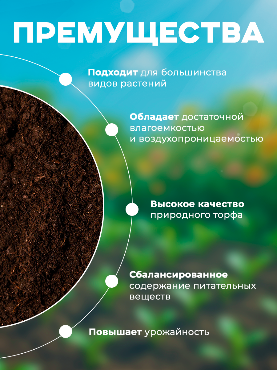 | Цветочный грунт | 32 кг / 20 л | Торфяная смесь с древесным углём | Петунии, розы, фиалки |