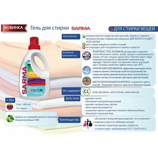 Сарма – российский производитель профессиональной бытовой химии, предлагающий решения для уборки, стирки и ухода за домом. Бренд позиционирует себя как доступную альтернативу премиальным маркам, сочетая эффективность составов с демократичной ценовой политикой.
