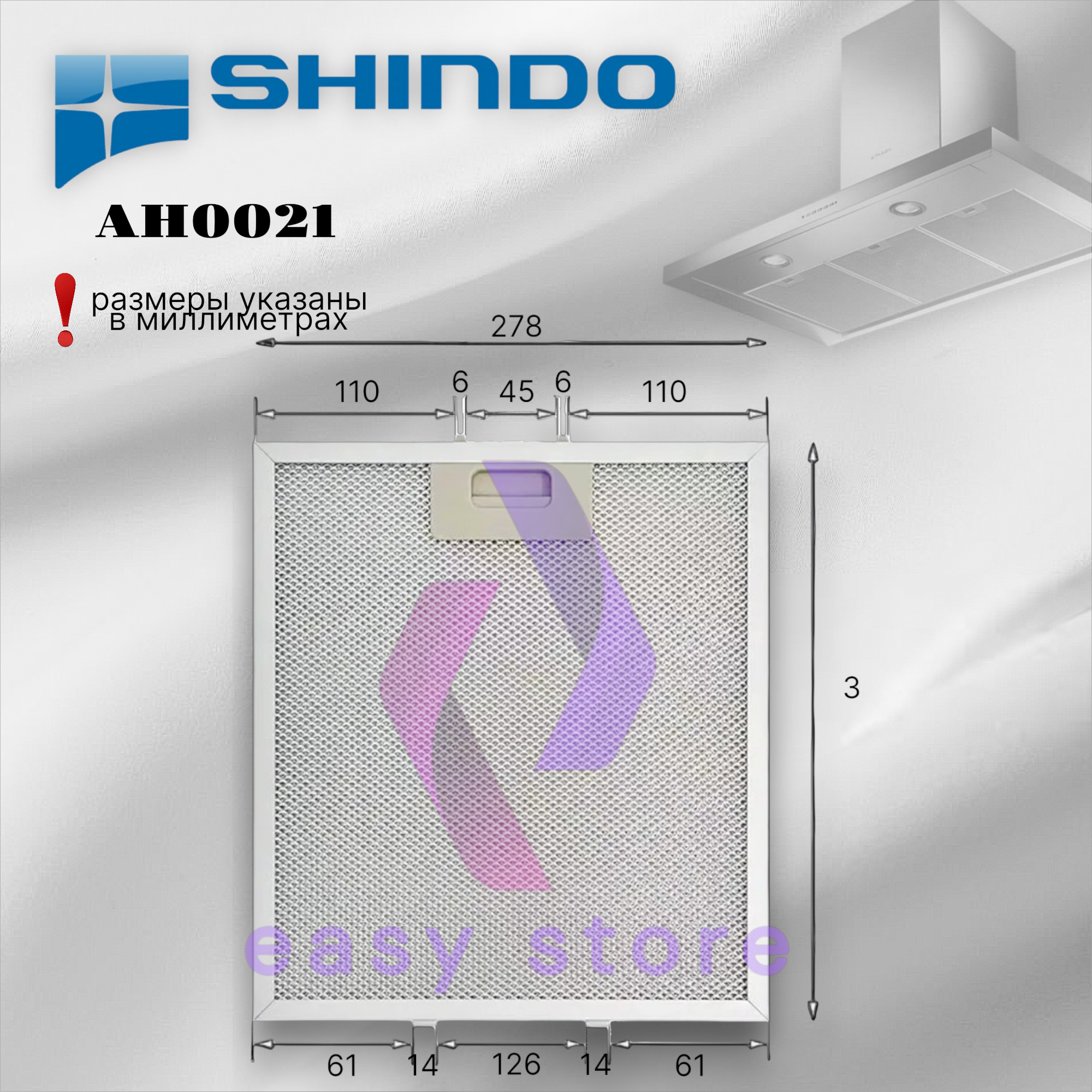 Размерная сетка Shindo включает фильтры от 243×228 мм (AH0021-08) до 525×188 мм (SPK3753). Для точного подбора используйте маркировку вытяжки или шаблон из инструкции.