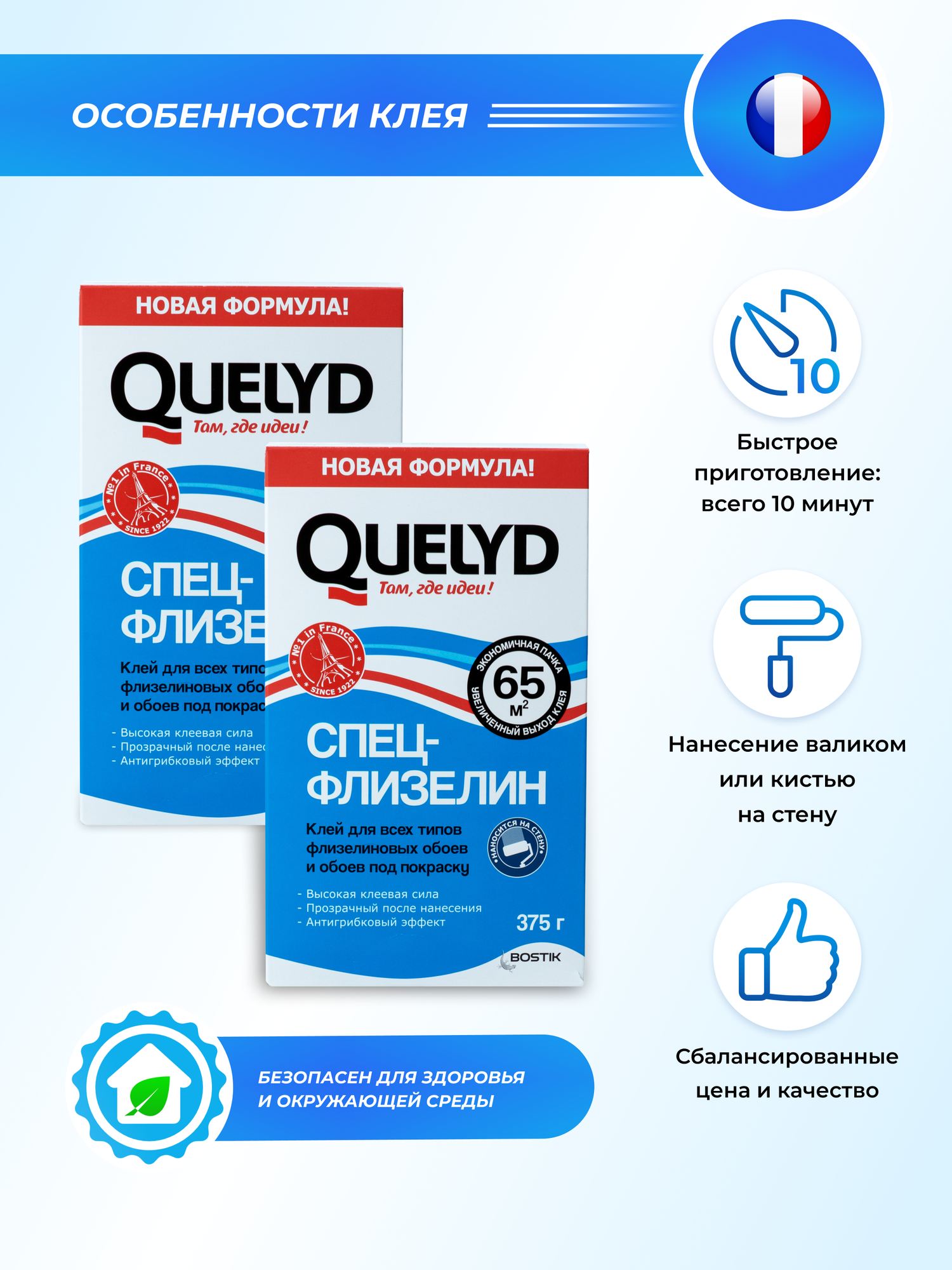 Флизелиновый клей QUELYD 0.375 кг нового поколения образует влагостойкое соединение — расход 65 м²/уп. Универсальный состав Germes 10 кг используется для фиксации паркета, шпона и фанеры при перепадах влажности до 80%.