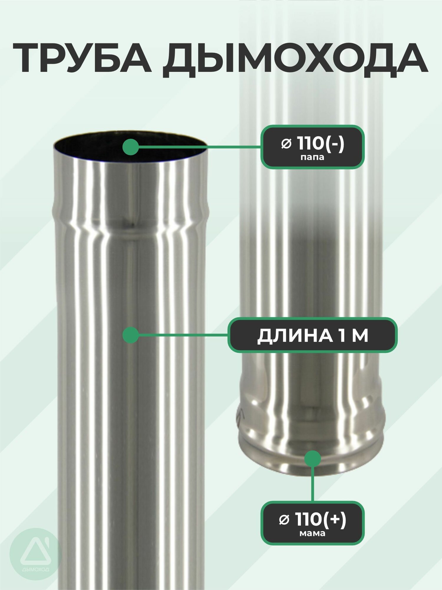 Особенность труб Сталь-Мастер – калиброванная толщина стенок 0.5-1 мм и лазерная сварка швов. Для соединения секций используются конусные хомуты 125-400 мм из нержавейки 0.5 мм.