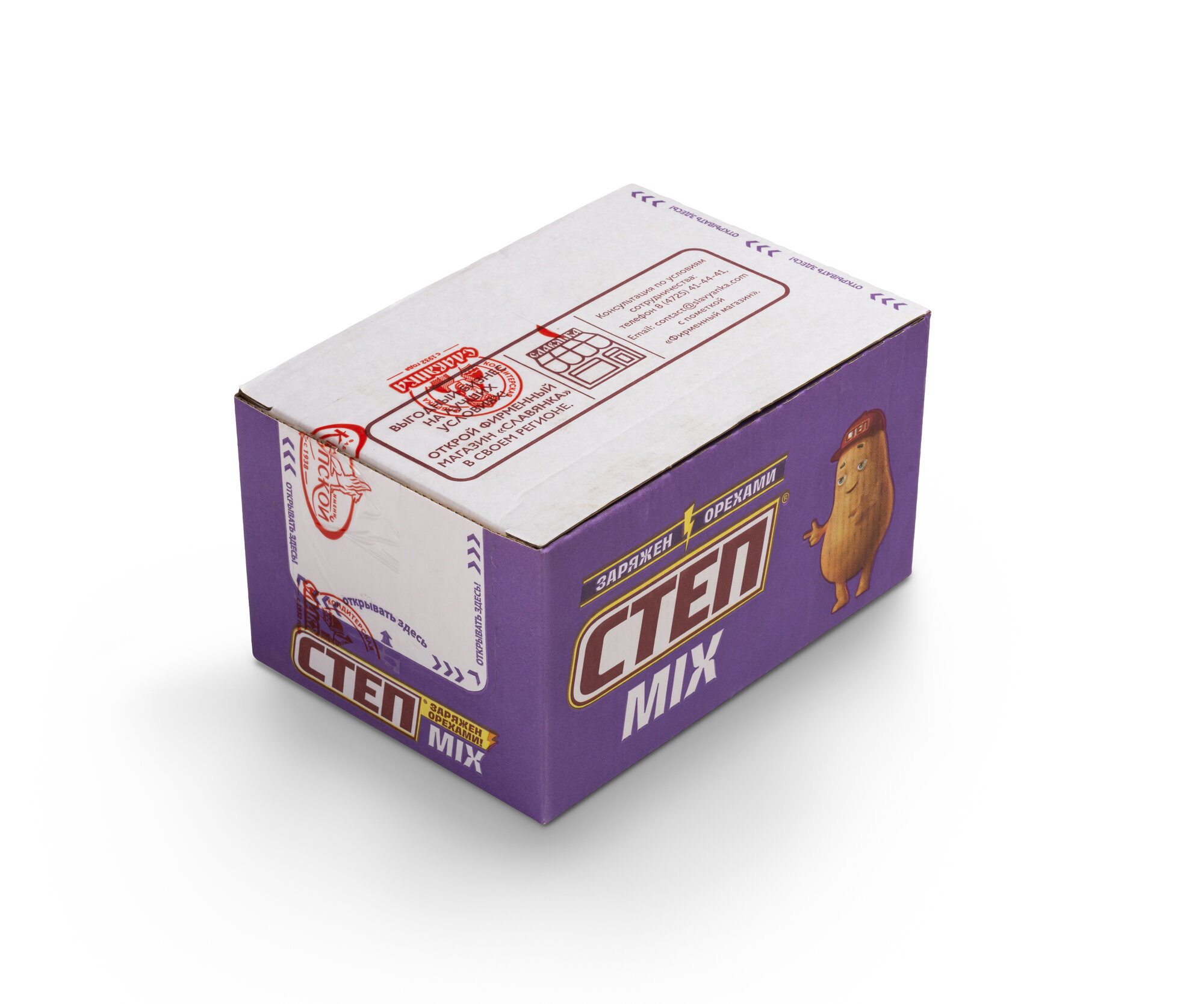 Конфеты и шоколадные пасты Степ — совместная разработка с кондитерской фабрикой Славянка. Продукты отличаются высоким содержанием орехов (23% в ассортименте Степ MIX) и использованием золотого стандарта карамелизации. Питательная ценность вафель "Золотой степ" — 4.3 г белка на 100 г при минимальном содержании глютена (< 0.1%).