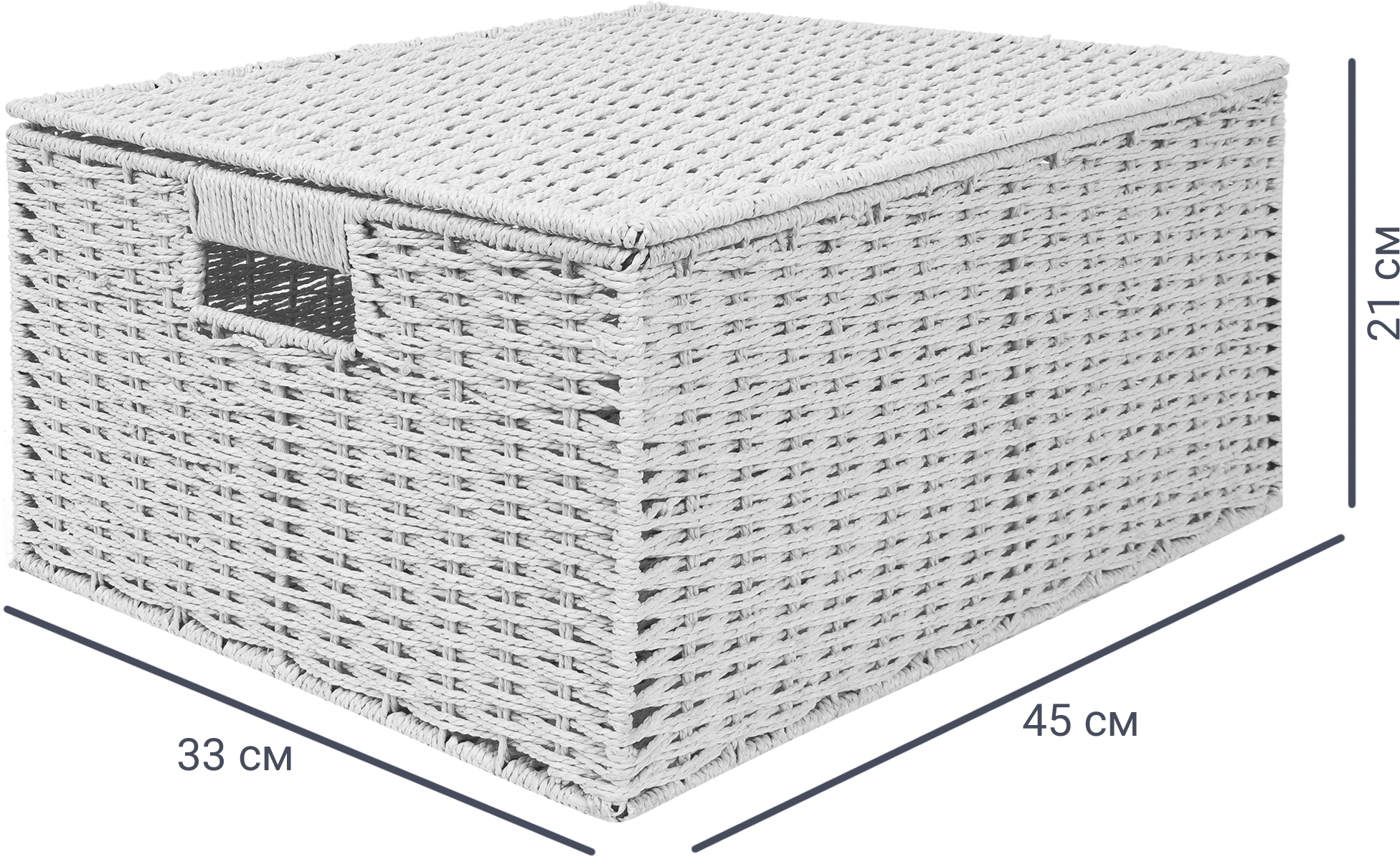 Модель 45x33x21 см (31 л) подходит для систем хранения под раковиной. Изгибающиеся стенки адаптируются под пространство, а съемная крышка создает плоскую поверхность.