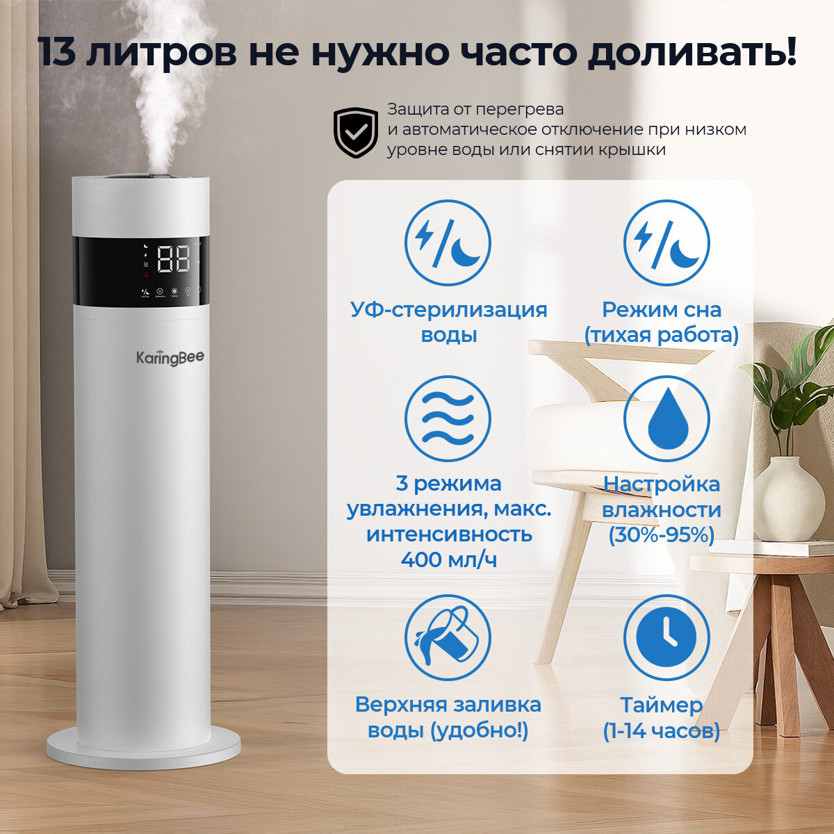 Среди топовых товаров выделяется ультразвуковой увлажнитель Classmark HD1179 с RGB-подсветкой и функцией ароматерапии. Резервуар на 180 мл обеспечивает 12 часов работы, а технология "холодного пара" не создает конденсата. В сравнении с аналогами он отличается: