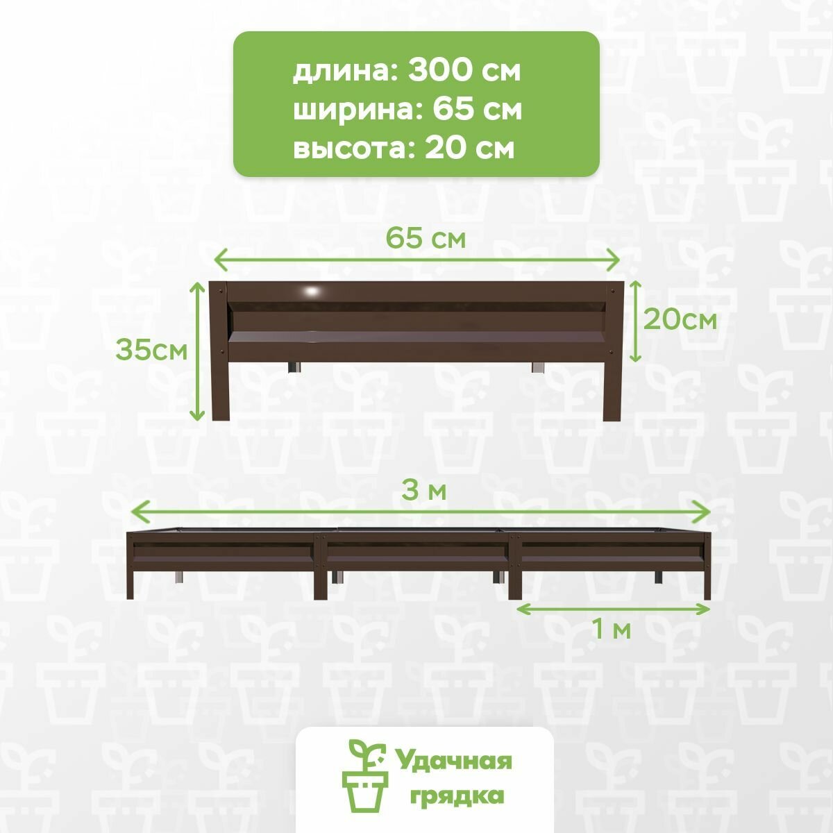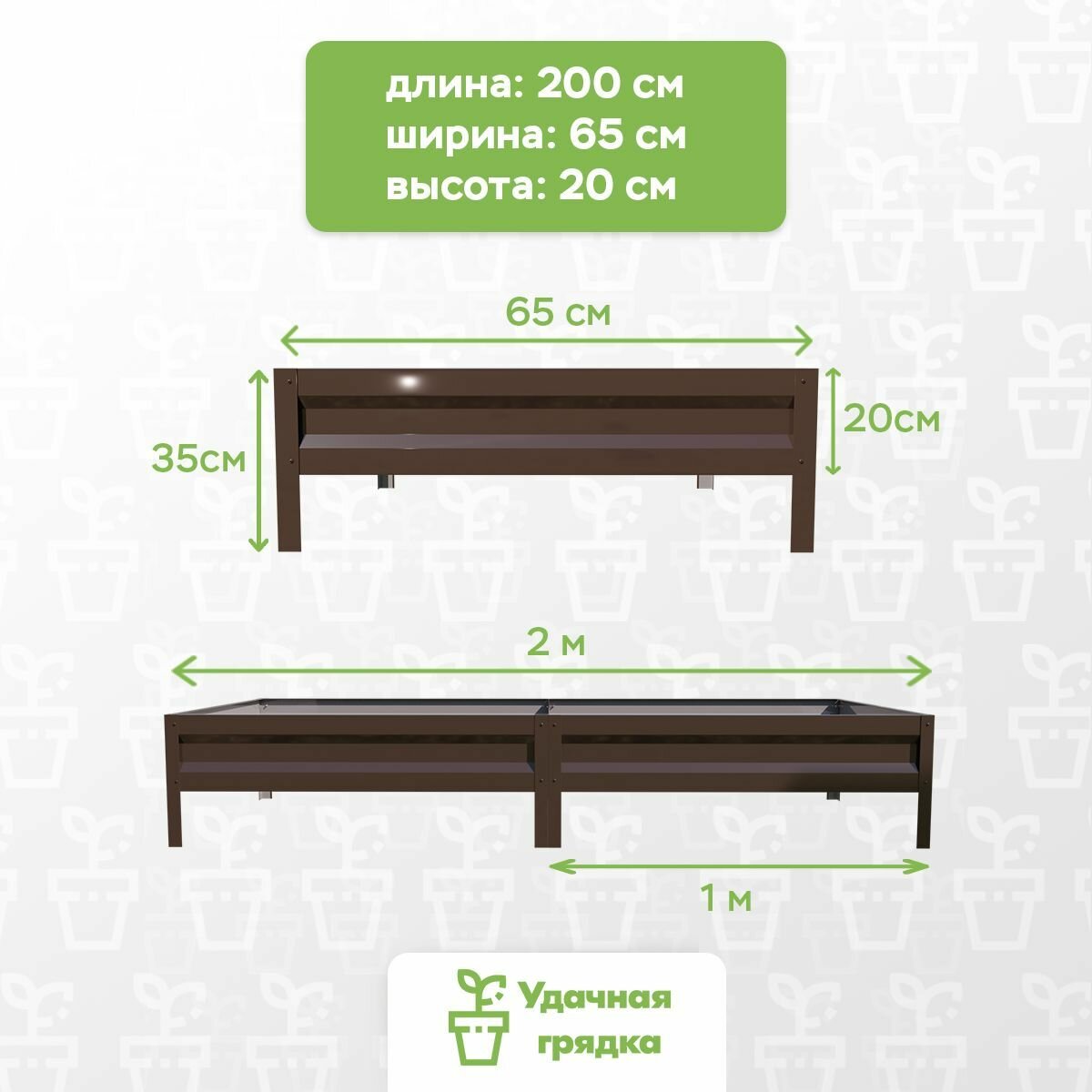 Конструкции из оцинкованной стали — технологичное решение для современного дачника. Базовые модели представлены в трех длинах (2, 3 и 4 метра) с шириной 0.65-1 м и высотой борта 15/20 см. Например: