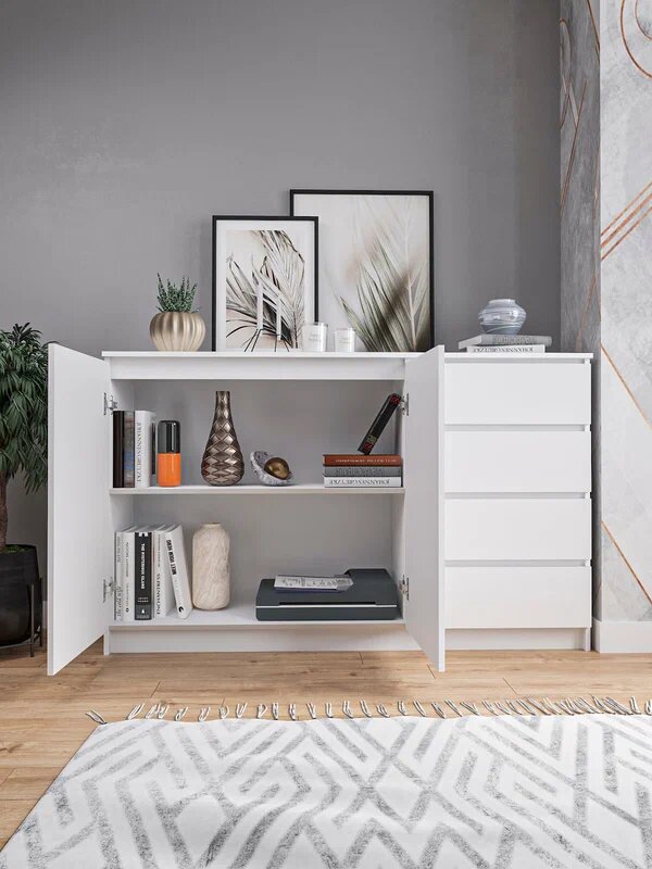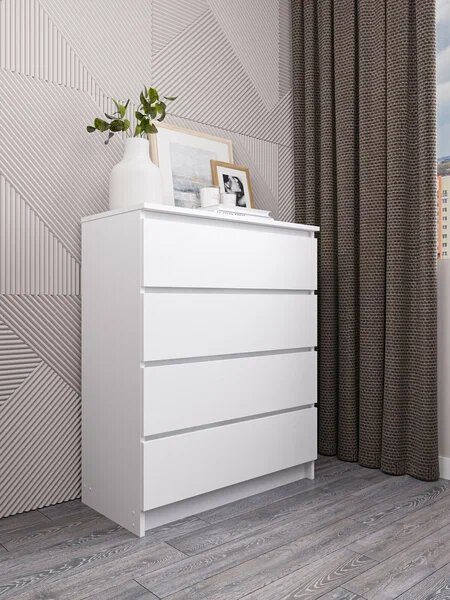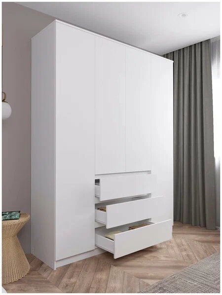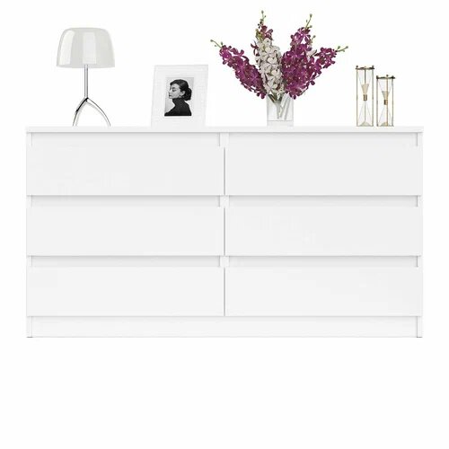 Комоды "Ваша Мебель" созданы для оптимизации хранения с минималистичным дизайном. Модели 120x78x39 см и 140x78x39 см с белым матовым покрытием в стиле Икеи обеспечивают вместительность 4-6 ящиков без выступающих ручек – идеально для небольших спален или детских комнат. Безрамная конструкция комода для одежды 80x99x40 см позволяет вписаться в узкие пространства прихожих.